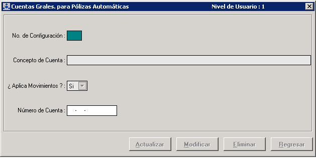 Cuentas Generales para Polizas Automaticas [CONP110]
