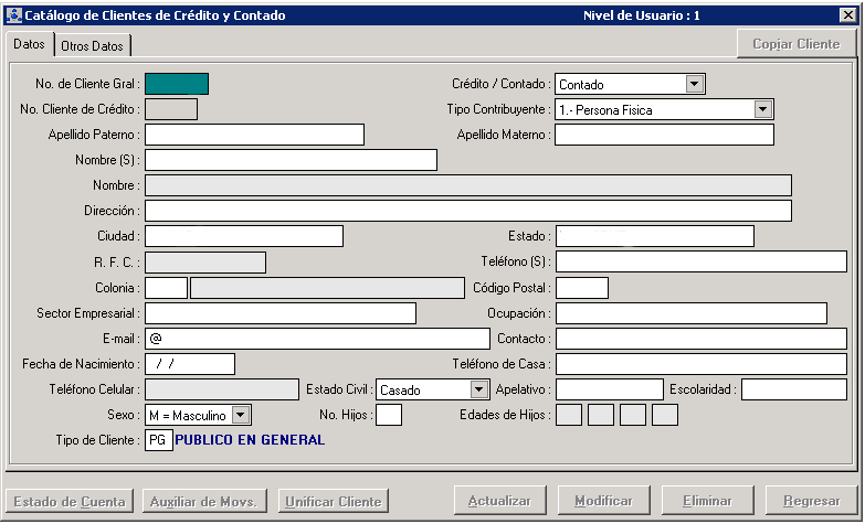 / Mercadotecnia / Catálogos / Clientes de Credito y Contado [CXCP101]
