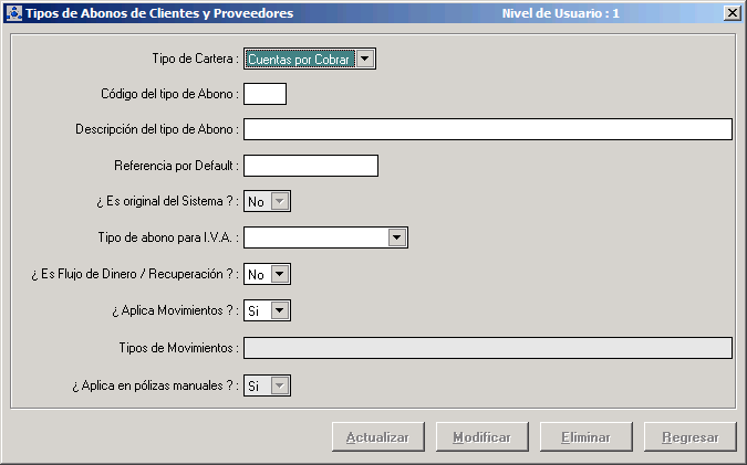 Tipos de abonos de clientes y proveedores [CXP105]