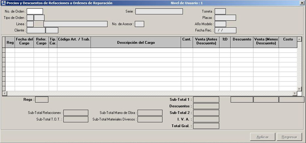 Precios y descuentos de refacciones a ordenes de reparación [REFP208]