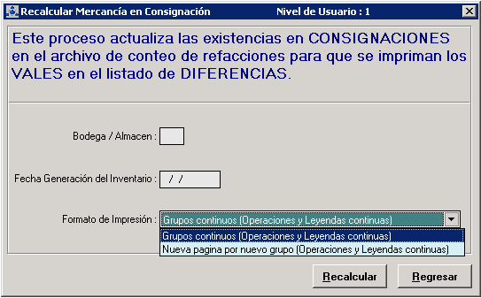 Recalcular mercancia en consignación [REFP409D]
