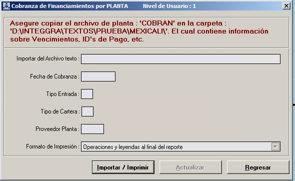 Crobranza de Financiamiento por PLANTA[VEHP403]